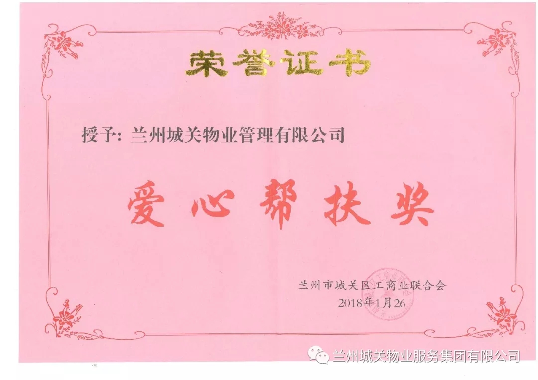 1月26日,城關(guān)區(qū)工商業(yè)聯(lián)合會(huì)第十三屆二次執(zhí)委會(huì)議在蘭召開。會(huì)議書面?zhèn)鬟_(dá)了十九大及全聯(lián)十二大會(huì)議精神,審議通過了城關(guān)區(qū)工商聯(lián)十三屆一次執(zhí)委會(huì)工作報(bào)告及有關(guān)人事調(diào)整事項(xiàng),并表彰了2017年度優(yōu)秀會(huì)員及愛心企業(yè)。蘭州城關(guān)物業(yè)服務(wù)集團(tuán)榮獲“愛心幫扶獎(jiǎng)”,蘭州城關(guān)物業(yè)服務(wù)集團(tuán)CEO楊佳林榮獲“突出貢獻(xiàn)獎(jiǎng)”。