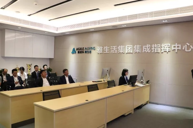 在雅生活集團總裁劉德明一行的陪同下,董事長楊民召參觀了雅居樂集團展廳、雅生活集團展廳、雅生活集團集成指揮中心、雅居樂中心避難層、停車場等地方,深入了解雅居樂集團、雅生活集團的“1+N”多元化發(fā)展戰(zhàn)略和雅生活集團智慧物業(yè)建設(shè)成果。