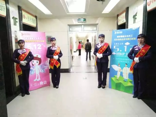 城關(guān)物業(yè)醫(yī)院類各項(xiàng)目部在護(hù)士節(jié)當(dāng)天,在醫(yī)院各主要入口處擺放節(jié)日祝福展架,并向來(lái)往的醫(yī)護(hù)人員行禮,向他們送去節(jié)日的祝福。