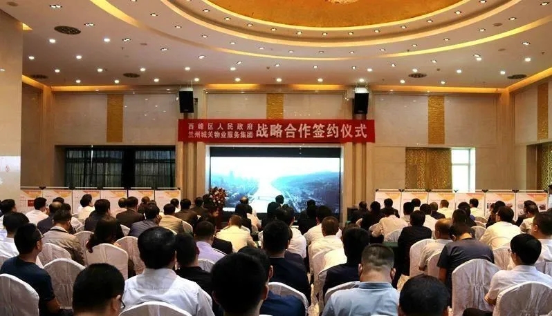 參會(huì)人員觀看城關(guān)物業(yè)公司宣傳片及全域無(wú)垃圾專(zhuān)項(xiàng)治理投資項(xiàng)目示范案例視頻后,慶陽(yáng)市西峰區(qū)區(qū)委常委、常務(wù)副區(qū)長(zhǎng)李廷位、蘭州城關(guān)物業(yè)服務(wù)集團(tuán)有限公司總裁楊佳林代表雙方簽訂合作協(xié)議。