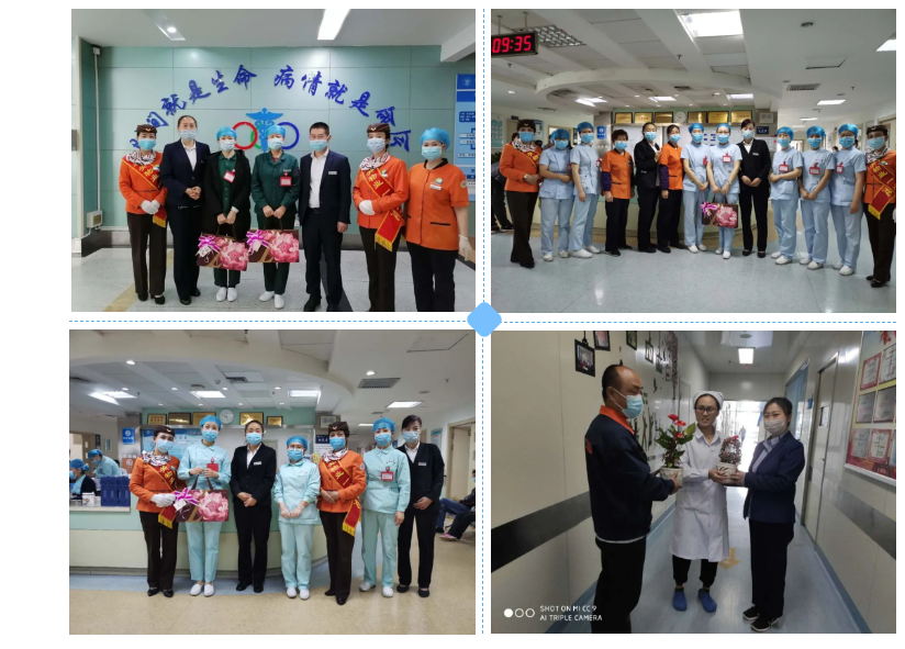 護士節(jié)當天,蘭州城關物業(yè)服務集團紛紛向所服務醫(yī)院各科室送去鮮花、蛋糕、巧克力等禮品,向一直奮戰(zhàn)在抗疫第一線的白衣天使送去節(jié)日的問候。今年的護士節(jié)更值得我們永遠銘記,在這個不平靜的春天,新冠肺炎疫情的陰霾遮擋了明媚的陽光,中華民族經(jīng)受了又一次嚴峻考驗。廣大護士響應黨中央號召,義無反顧、逆行出征,白衣執(zhí)甲、不負重托,英勇無畏沖向國內(nèi)國外疫情防控斗爭第一線。他們?yōu)榇蜈A中國疫情防控阻擊戰(zhàn)、保障各國人民生命安全和身體健康作出重要貢獻,用實際行動踐行了敬佑生命、救死扶傷、甘于奉獻、大愛無疆的崇高精神,展現(xiàn)了新時代護理工作者的良好形象,贏得了人民群眾的廣泛贊譽,無愧于“白衣天使”的光榮稱號。讓我們在這個具有特殊意義的節(jié)日里,向他們致以最崇高的敬意!