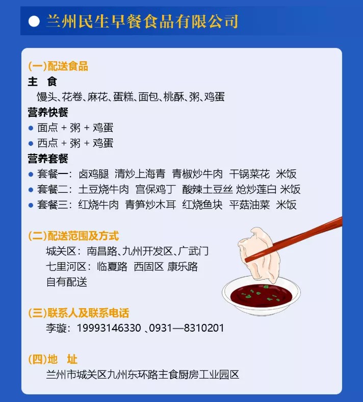 為了緩解當(dāng)前蘭州地區(qū)團(tuán)體就餐需求加大、居民外出就餐不便的問(wèn)題,甘肅省商務(wù)廳指導(dǎo)蘭州市內(nèi)規(guī)模較大、防控措施到位、食品安全達(dá)標(biāo)的食品生產(chǎn)企業(yè)和餐飲企業(yè)開(kāi)展餐飲配送服務(wù),經(jīng)過(guò)嚴(yán)格挑選,蘭州民生早餐食品有限公司確定為疫情期間首批餐飲配送企業(yè)。此次,城關(guān)物業(yè)與民生早餐共同為隔離小區(qū)、防疫點(diǎn)位、團(tuán)體單位及社會(huì)大眾配送餐品,全力滿足重點(diǎn)區(qū)域疫情期間基本生活需求。