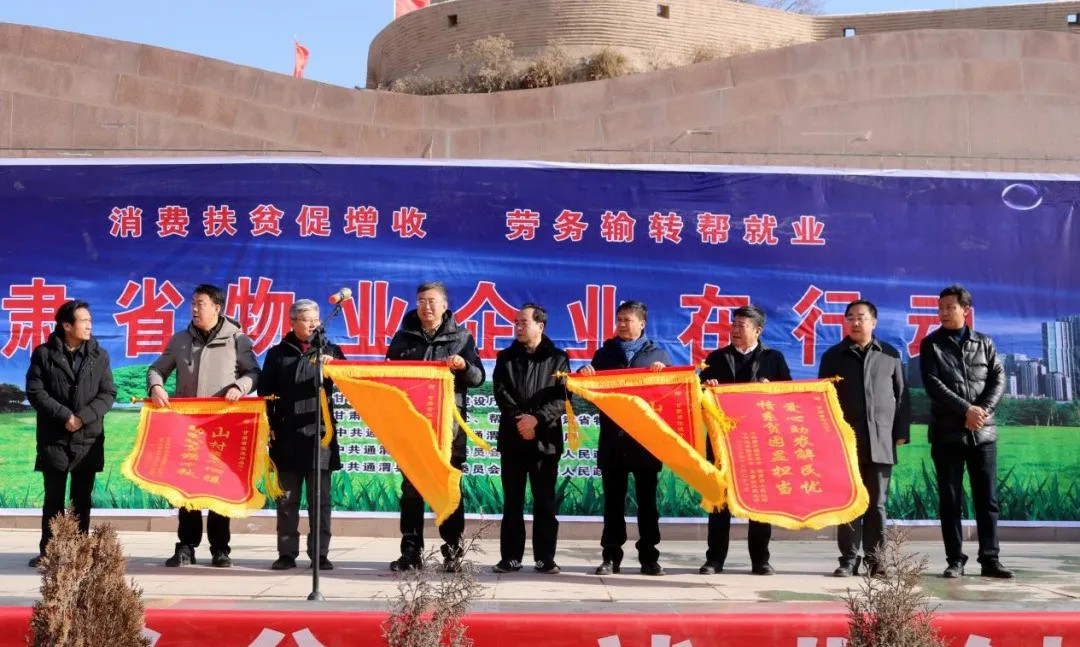 為大力開(kāi)展消費(fèi)扶貧,助力脫貧攻堅(jiān)和推進(jìn)鄉(xiāng)村振興,在省住建廳房地產(chǎn)監(jiān)管處和廳幫扶辦引導(dǎo)和支持下,由甘肅省物業(yè)管理行業(yè)協(xié)會(huì)牽頭,蘭州城關(guān)物業(yè)服務(wù)集團(tuán)有限公司與20余家物業(yè)公司一起,赴甘肅省通渭縣榜羅鎮(zhèn),開(kāi)展以“消費(fèi)扶貧促增收、勞務(wù)輸轉(zhuǎn)幫就業(yè)、物業(yè)企業(yè)在行動(dòng)”為主題的公益活動(dòng),并與榜羅鎮(zhèn)、馬營(yíng)鎮(zhèn)政府簽訂了消費(fèi)扶貧推廣協(xié)議書。