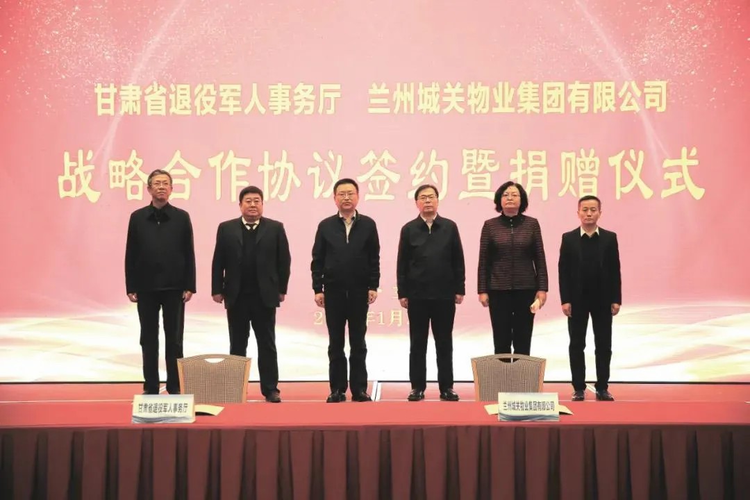 社會尊崇,愛滿人間。為深化雙擁共建,關愛退役軍人,甘肅省退役軍人事務廳與蘭州城關物業(yè)集團戰(zhàn)略合作協(xié)議簽約暨捐贈儀式在省城寧臥莊賓館舉行。