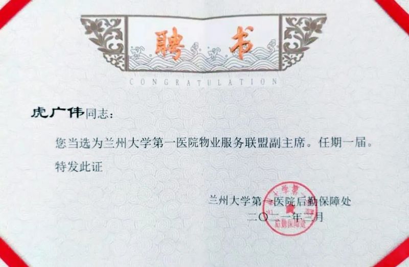 為進一步加強甘肅省各級醫(yī)院物業(yè)管理,提升物業(yè)保潔服務水平,甘肅省醫(yī)院協(xié)會后勤管理專業(yè)委員會舉辦了2021年第一季度物業(yè)保潔管理與機電設備節(jié)能與安全管理專題學術活動,蘭州城關物業(yè)服務集團有限公司受邀參加并獲得院方認可,成為蘭州大學第一醫(yī)院物業(yè)服務聯(lián)盟成員單位。