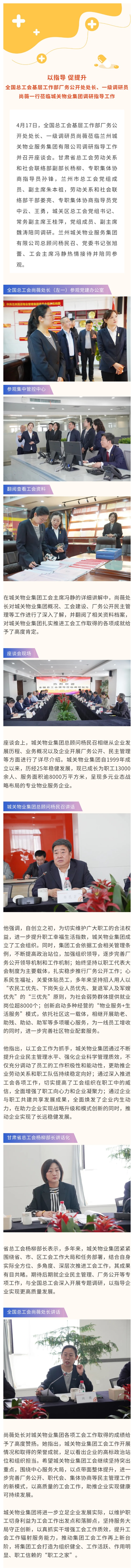 以指導 促提升|全國總工會基層工作部廠務公開處處長、一級調(diào)研員尚薇一行蒞臨城關物業(yè)集團調(diào)研指導工作