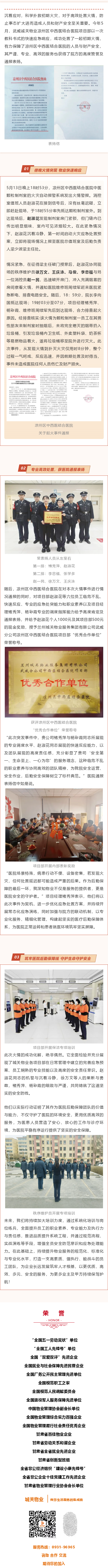 【員工隊(duì)伍建設(shè)】醫(yī)院突現(xiàn)火情,武威誠(chéng)關(guān)物業(yè)高效處置、成功滅火獲甲方通報(bào)表?yè)P(yáng)!